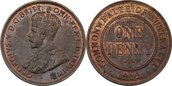 1912H. Brown with some red, small reverse spot.