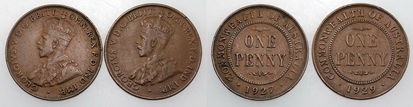 1927 Indian Obverse, 1929 English Obverse. (2 coins total).