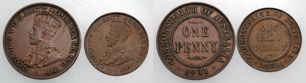 1931 Indian Obverse. Also Halfpenny 1933/2 overdate. (2 coins total).