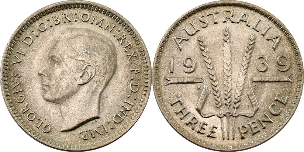 Threepence. 1942M. Scarce date, light tone with...