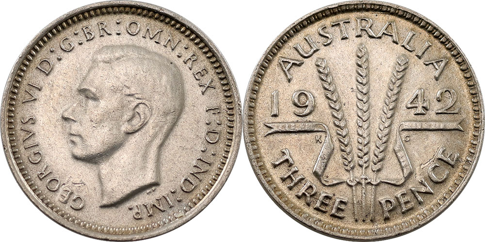 Threepence. 1939. Light tone with satin bloom.