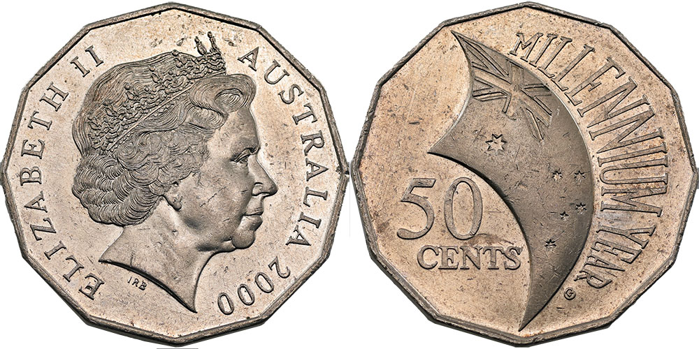Fifty Cent. 2000 Millennium. Incuse Union Jack...