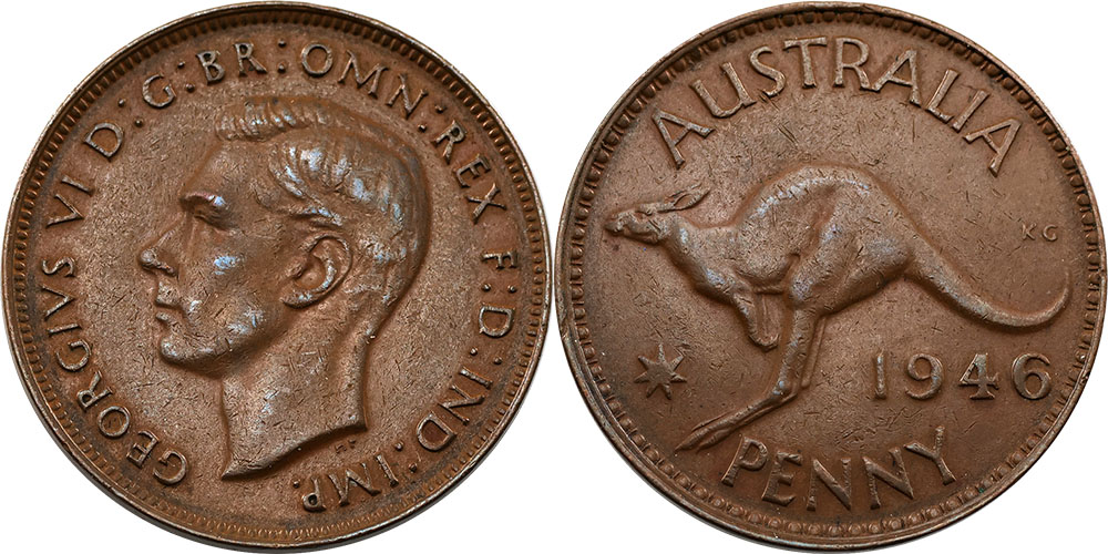 Penny. 1946. Key date. Tiny dot between K and G.