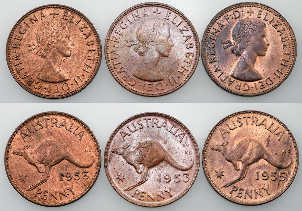 1953, 1953A, 1955. Brown to mint red. (3 coins total).