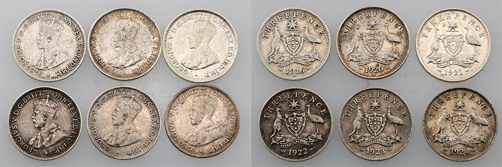 Threepence. 1918M, 1919M. First with brilliant...