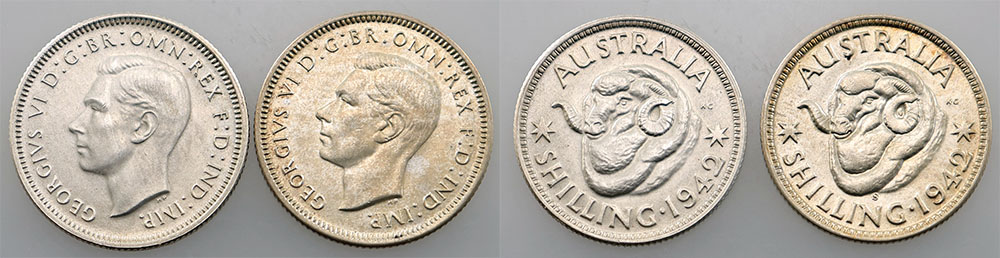 Shilling. 1941, 1942. PCGS graded AU 55 and AU...