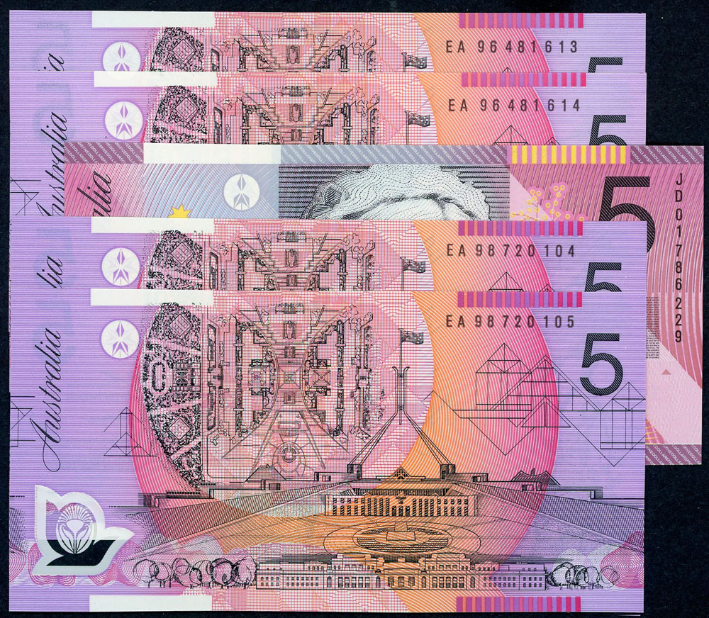 | Lot: 987 Category: Last Prefix Australian Banknotes > Five Dollar |