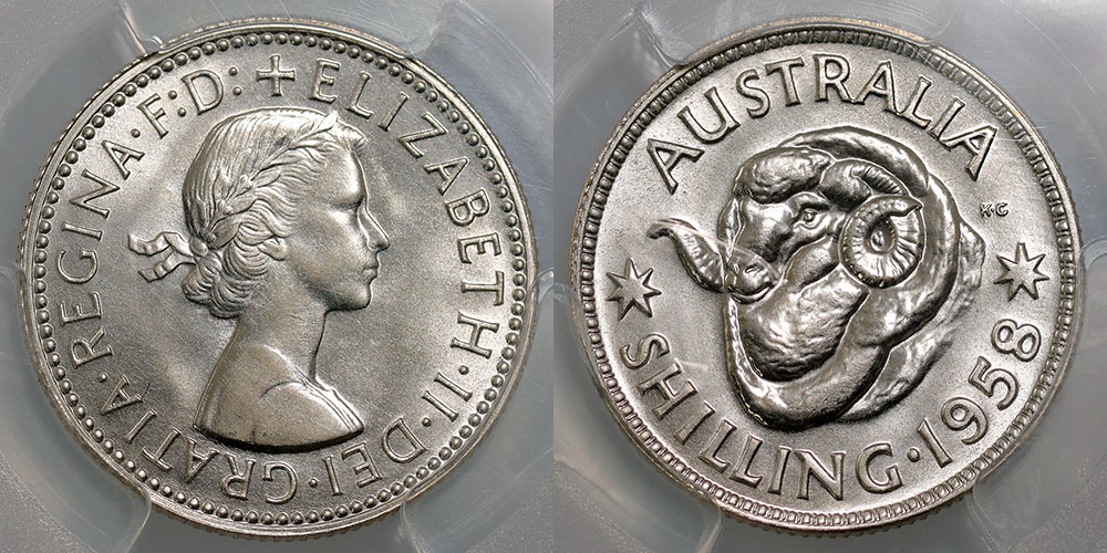 Shilling. 1958 Proof Shilling. PCGS graded PR...
