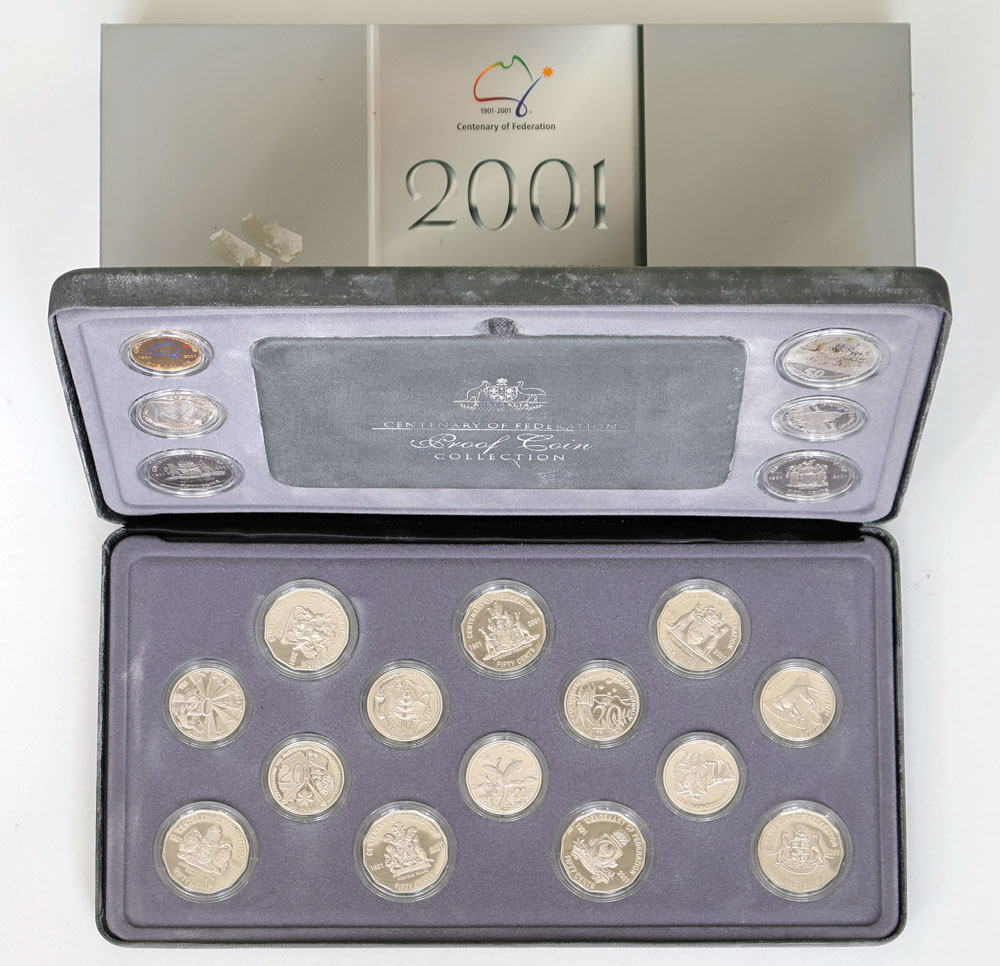 2001 Centenary of Federation Proof 20-coin collection. In box of issue, some environmental damage to case.