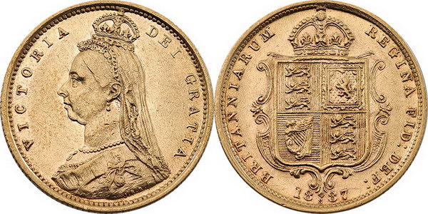 Half Sovereign. 1887M Shield Reverse. Victoria...