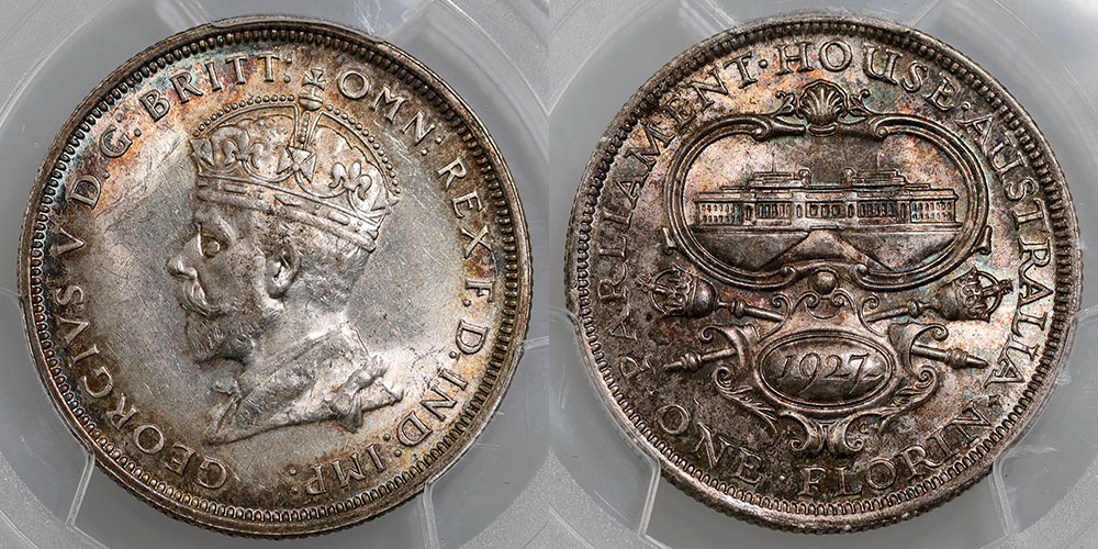 Florin. 1927 Canberra. Deep, attractive Reverse...