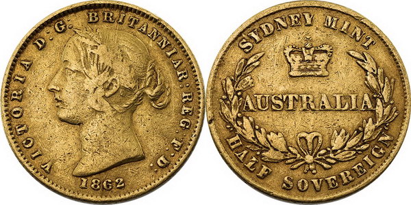 Half Sovereign. 1861 Sydney Mint. Type II,...