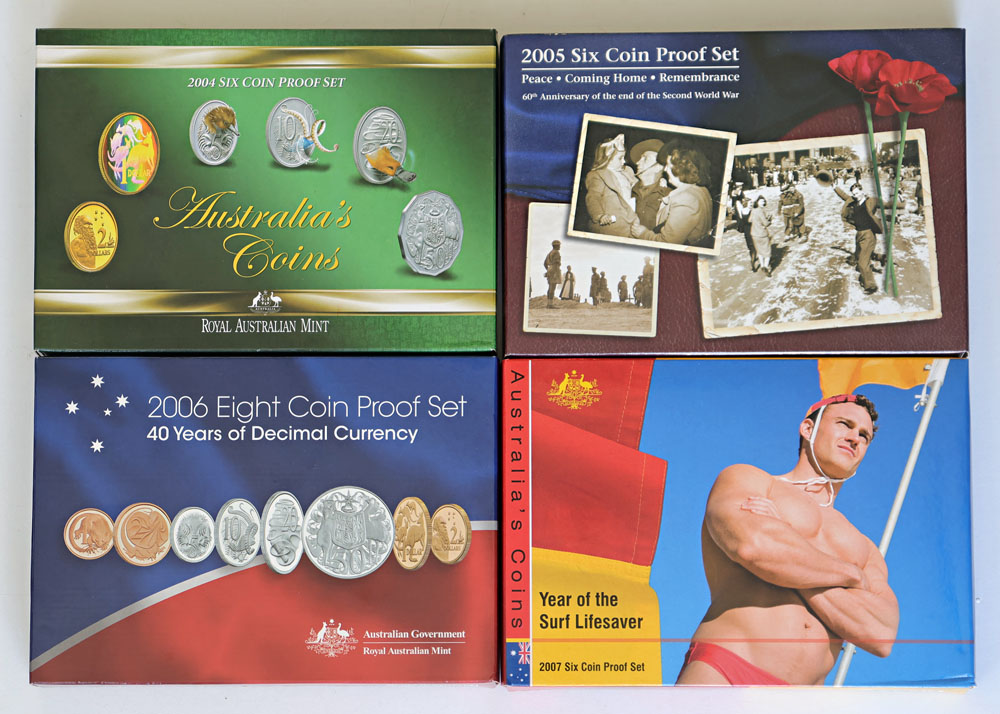 2004, 2005, 2006, 2007 Proof sets. Minor marks. (4 items total).