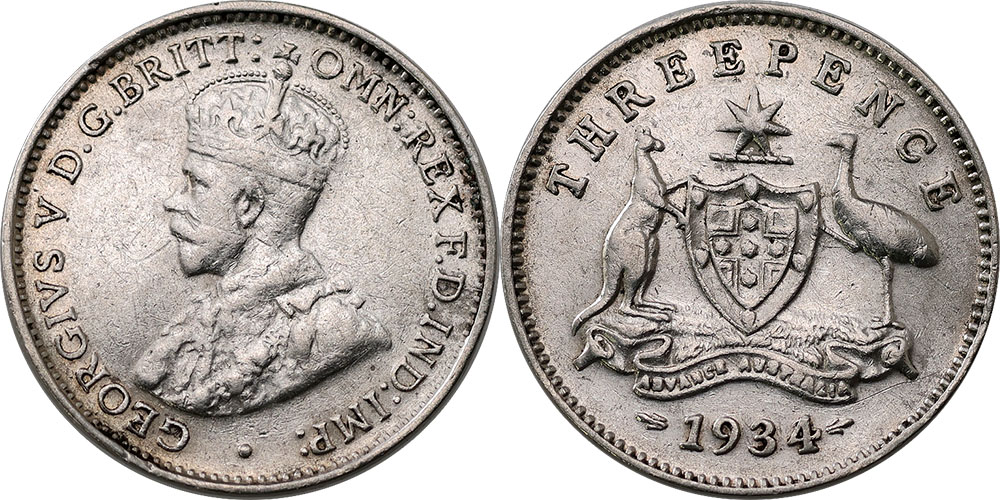 Threepence. 1934/33 Overdate. Good clear band.