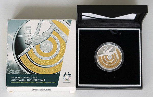 2018 Pyeongchang Olympic Team 1 oz selectively gold-plated silver Proof. In box of issue with COA (damaged).