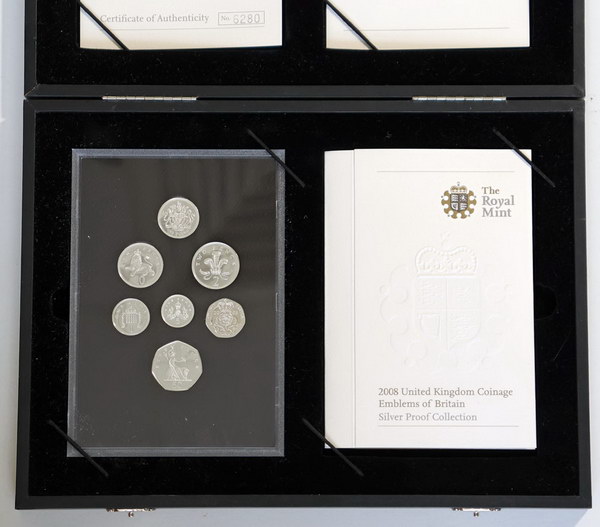 2008 7-Coin silver Proof set. In large case of issue with all COAs.