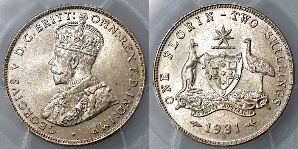 Florin. 1932. Key date. PCGS graded MS 64...