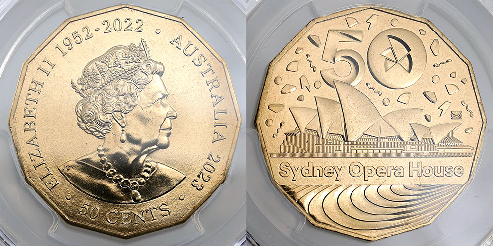2023 Sydney Opera House with envelope privymark. PCGS graded MS 68 (49197542). Only 7 graded higher.