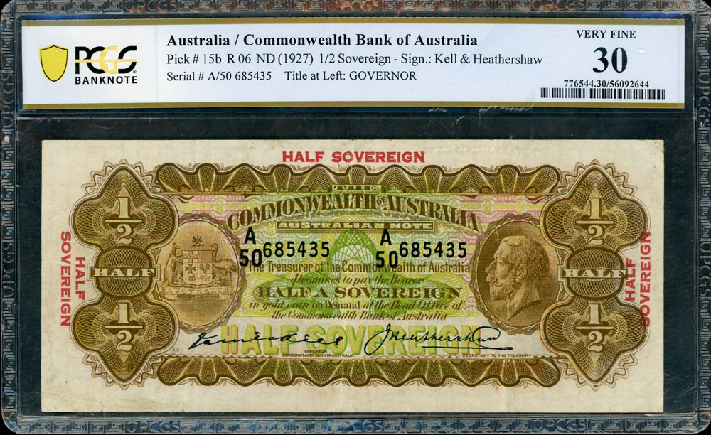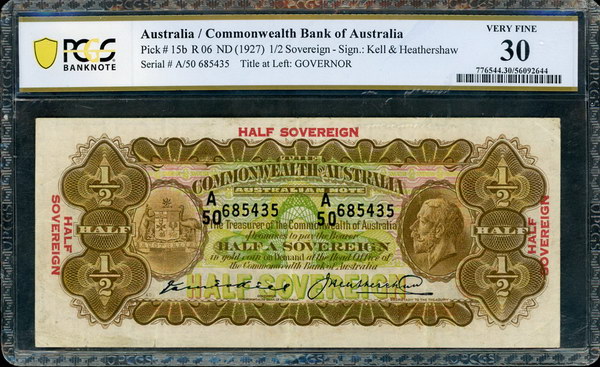 1927 Kell-Heathershaw (R 6). PCGS graded VF 40 (56092644). Split at bottom.