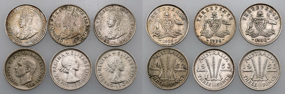 1928, 1936 (2), 1952, 1953 (2). (6 coins total).