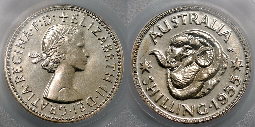 1955 Proof Shilling. PCGS graded PR 63 (13071740).