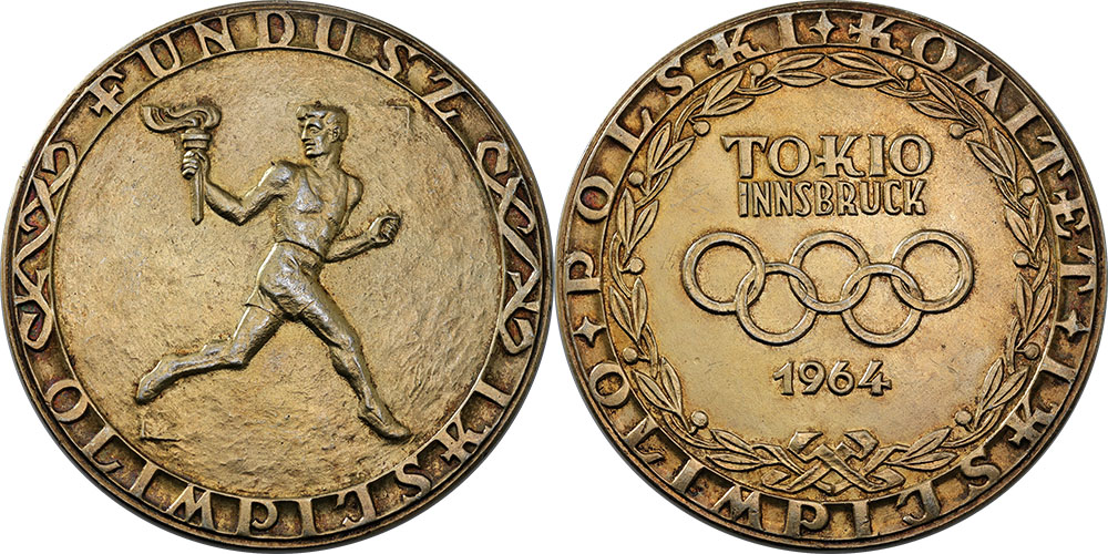 1964 Tokyo Olympics silver gilt medal for Polish entrants (70mm).