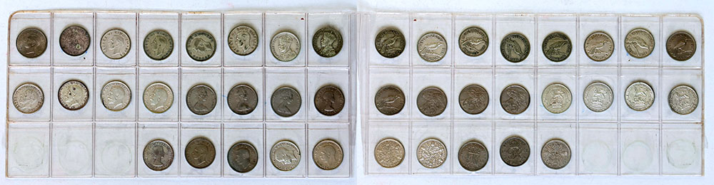| Description: New Zealand Sixpence 1934, 1935, 1939, 1942, 1944, 1946 (2), 1951, 1953, 5 Cents 1971, 1974, 1975 and GB Sixpence 1921, 1923, 1925, 1926, 1929D, 1932D, 1948, 1952 and Proof 1953. (21 coins total). VG-UNC |