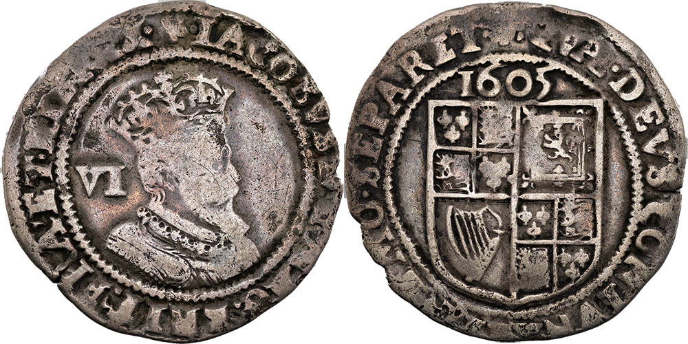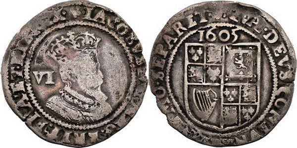 Sixpence hammered, James I 1605. Toned.